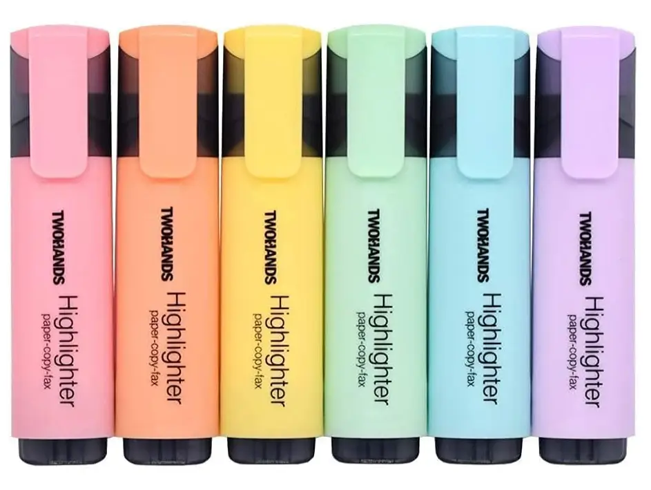 TWOHANDS Highlighter with a chisel tip delivers smooth, even ink flow that highlights text clearly without bleeding through standard paper. The six assorted pastel colors are soft on the eyes, making them ideal for studying, note-taking, and color-coding important information. The chisel tip allows both broad highlighting and precise underlining, giving you flexibility and control in everyday use